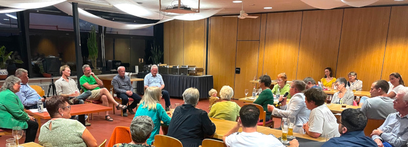 Fachlich hochkarätige Information und bodenständige Expertise aus unserer Stadt und Region trafen am 14. Mai auf eine große Zahl am Thema Landwirtschaft Interessierter. Fast fünfzig BesucherInnen beschäftigten sich mit den aktuellen Themen unserer Landwirtinnen und Landwirte. Die Pfullinger Landfrauen ha/en zusammen mit den Fraktionen von GAL und UWV zu einem Vortrag mit Podium eingeladen. Selten erhält die lokale Landwirtschaft öffentliche Aufmerksamkeit, an diesem Abend stand sie ganz im Mittelpunkt.